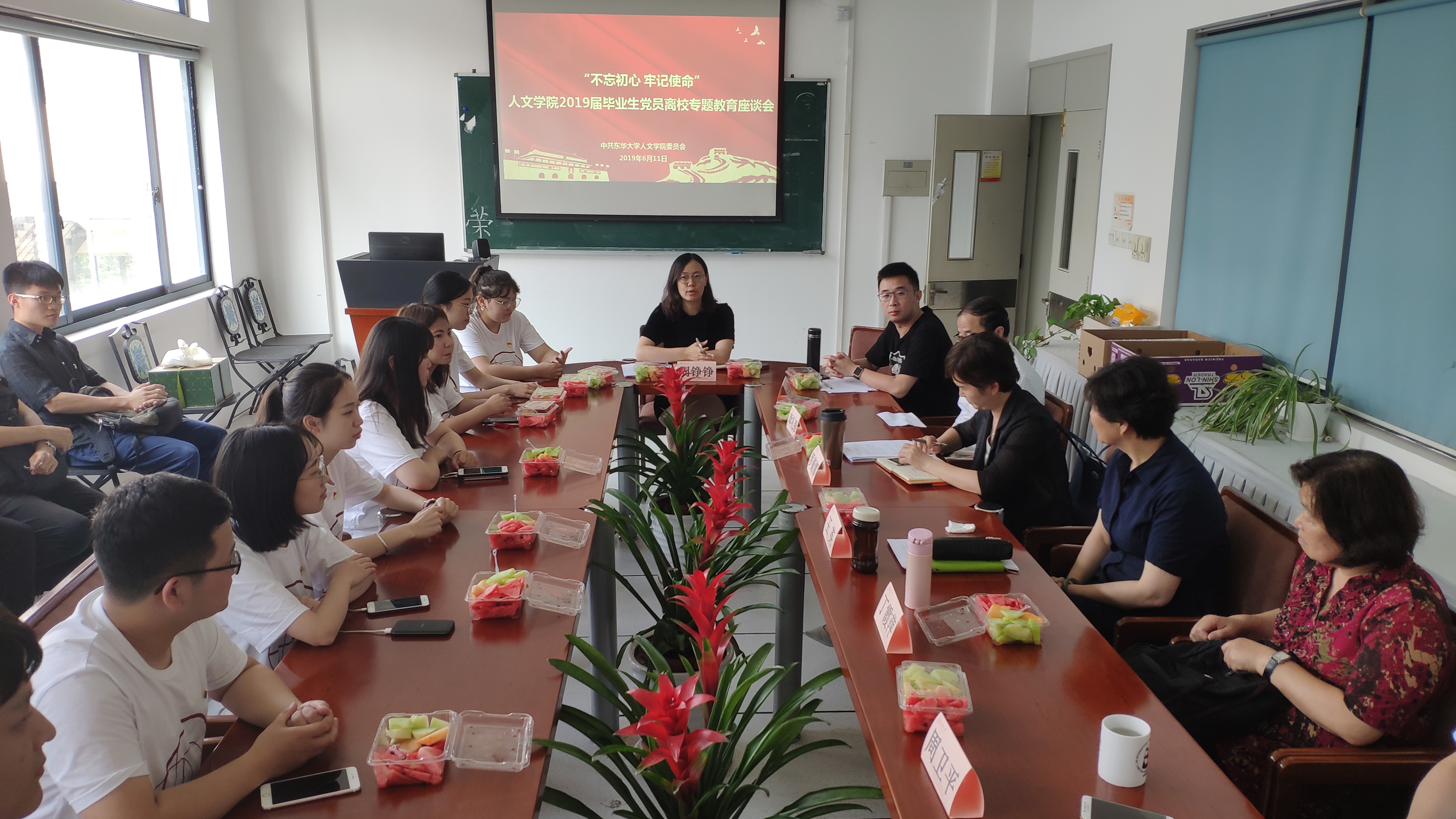 2019届毕业生离校再即,为确保毕业生安全、稳定、文明、愉快离校,有效推进平安校园、文明校园与和谐校园建设,切实做好毕业生党员离校前集中学习教育和组织关系转移管理等有关工作,sjb世俱杯中国官网入口党委结合学院实际情况,于2019年6月11日,开展了以“不忘初心,牢记使命”为主题的毕业生党员离校专题教育座谈会。sjb世俱杯中国官网入口党委书记王英、副书记罗薇娜,sjb世俱杯中国官网入口关工委丁霞萍,sjb世俱杯中国官网入口党委委员章礼强、叶长海、周卫平、周铮铮,以及毕业班辅导员、各学生党支部书记与sjb世俱杯中国官网入口2019届毕业生党员出席本次活动。