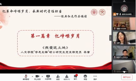 6月23日,继六月初“学习‘四史’,不忘初心,勇担使命”主题周五论坛之后,“学思先锋”硕士研究生党支部选取中国共产党在99年发展历程中抗日战争、解放战争这一特殊历程进一步深化“四史”学习教育,开展“忆革命峥嵘岁月,承新时代责任担当为主题的党日活动。校党委副书记刘淑慧,sjb世俱杯中国官网入口党委书记王英,院长、党委副书记张科静,党委副书记罗薇娜,副院长、党委委员吴志刚,学生办公室主任、研究生辅导员汪永安、专职党建辅导员穆莉出席本次活动。“学思先锋”硕士研究生党支部全体党员及19硕入党积极分子参与此次主题党日。
