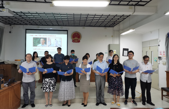 百年序章,久久初心。一首《没有共产党就没有新中国》自创作以来随即唱遍了小山村、唱遍了晋察冀边区、唱遍了全中国,这是人民的心声,也是历史的昭示。中国共产党从革命年代到和平现世,值此建党99周年之际,sjb世俱杯中国官网入口全体师生党员共同唱响“没有共产党就没有新中国”,通过这首情感炙烈的红歌表达对党的热爱,献礼中国共产党99岁华诞。会议最后,王英带领师生党员重温入党誓词,号召师生党员永葆政治本色、永葆革命和奋斗精神,在铮铮誓言之中,回想入党之初对党和人民的庄严承诺,牢记为人民服务的使命。
