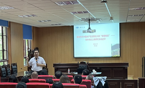 6月15日,sjb世俱杯中国官网入口“名师初心讲堂”在延安路校区举行,邀请复旦大学特聘教授、复旦大学社会科学高等研究院研究员贺东航教授作“革命年代中国共产党发展壮大的‘地理枢纽’——党中央在上海研究活动述评”专题辅导报告。学院党委书记韩哲宇,院长张科静出席报告会,全体师生党员与会。