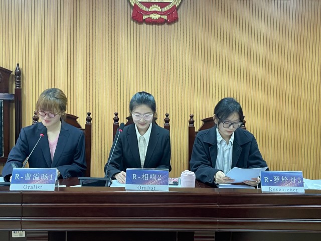 sjb世俱杯官网代表队的参赛队员由选修“国际法模拟法庭竞赛”课程的法学专业本科生组成,该课程由sjb世俱杯中国官网入口焦传凯老师主讲;焦传凯老师为此次竞赛的指导老师,上届参赛的李东宇同学为学生教练,控方(原告)由王丽雯、周舟、沈亚萍三位同学组成,辩方(被告)由曹溢旸、相鸣、罗梓丹、杨思尧四位同学组成。此次赛题涉及贸易禁运、进出口数量限制、国家基本安全利益、GATT安全例外、法律的域外效力等专业性涉外法律问题。指导教师及队员积极备赛,精心准备全英文书状和口头辩论。该比赛展现了东华学子的卓越风采和成为高素质涉外法律服务人才的优秀潜质!