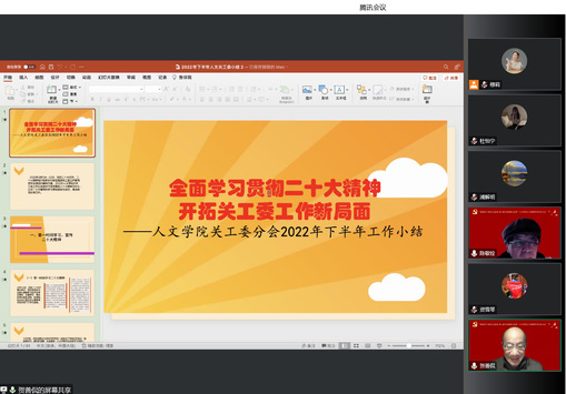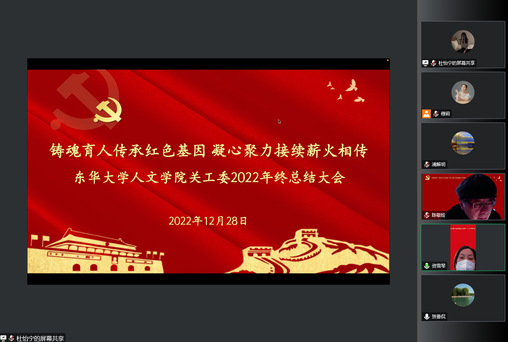 12月28日,sjb世俱杯中国官网入口关工委2022年终总结大会在线上举行。校关工委副主任浦解明,校关工委办公室侯晓彤,sjb世俱杯中国官网入口关工委老同志、学院党政班子成员、党委委员、专职辅导员参加会议。学院党委副书记资雪琴主持本次会议。