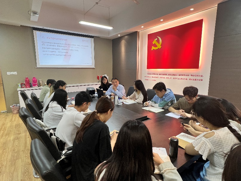 为全面学习把握落实党的二十大精神,扎实推进学习贯彻习近平新时代中国特色社会主义思想主题教育,6月6日,校党委副书记、纪委书记王云骏以“中国式现代化的历史进路和内涵特色”为主题,带领sjb世俱杯中国官网入口尚实先锋党支部的师生党员一同探讨学习,开展了一堂内容丰富的主题教育专题党课。