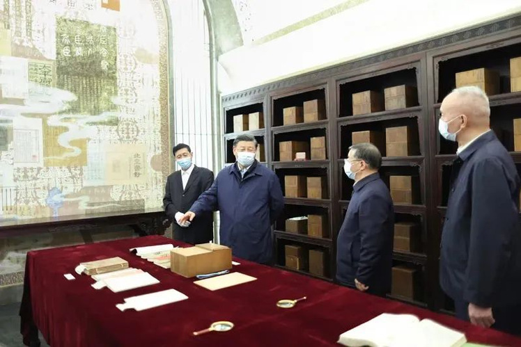 1日下午,习近平乘车来到位于北京市昌平区燕山脚下的中国国家版本馆中央总馆。中国国家版本馆主要承担国家版本资源规划协调、普查征集、典藏展示、研究交流和宣传使用职责,建有中央总馆和西安、杭州、广州分馆。习近平首先走进文华堂,听取版本馆规划建设有关情况介绍,参观国家书房、中华古代文明版本展、中国当代出版精品与特色版本展。在文瀚阁,习近平仔细察看马克思主义中国化时代化经典版本展,不时询问版本搜集整理有关情况,并登上五层露台俯瞰版本馆全貌。随后,习近平来到兰台洞库,参观“汉藏蒙满文大藏经雕版合璧”和“《四库全书》合璧”库展,详细了解馆藏精品版本保存情况。习近平强调,我十分关心中华文明历经沧桑流传下来的这些宝贵的典籍版本。建设中国国家版本馆是我非常关注、亲自批准的项目,初心宗旨是在我们这个历史阶段,把自古以来能收集到的典籍资料收集全、保护好,把世界上唯一没有中断的文明继续传承下去。盛世修文,我们这个时代,国家繁荣、社会平安稳定,有传承民族文化的意愿和能力,要把这件大事办好。我对中国国家版本馆的建成和管理是肯定的、满意的。国家版本馆的主要任务就是收藏,要以收藏为主业,加强历史典籍版本的收集,分级分类保护好。同时,要加强对收藏的研究,以便更好地做好典籍版本收藏工作。在做好主业的前提下,协助各方面做好历史典籍版本的研究和挖掘。总之,建设中国国家版本馆,是文明大国建设的基础工程,是功在当代、利在千秋的标志性文化工程。