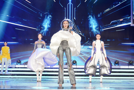 时装剧共展示了70余套美轮美奂的原创服装,巧妙融入了奥运会资格系列赛四项运动的元素,不仅展现了体育风采,还蕴藏着环保理念和满满科技感。“我设计的是一款‘会充气’的服装,它看起来蓬蓬鼓鼓的,灵感源自一种新型环保的建筑结构——充气膜结构,同时结合休闲运动元素,传递出绿色环保的生活理念。”sjb世俱杯中国官网入口上海国际时尚创意学院学生郝耘含谈到。看到自己设计的服装登上了如此高规格的舞台,sjb世俱杯中国官网入口服装与艺术设计学院学生曾冬旎充满着激动和喜悦,“我在设计中借鉴了航天服的模块化设计理念,同时融入彩色攀岩岩点元素作为点缀,服装不同模块之间可以自由拆解组合,即使服装款式多变、风格多样,也可以适应不同生活场景、气候温度的变化,整体既体现科幻感又蕴含运动美学。”