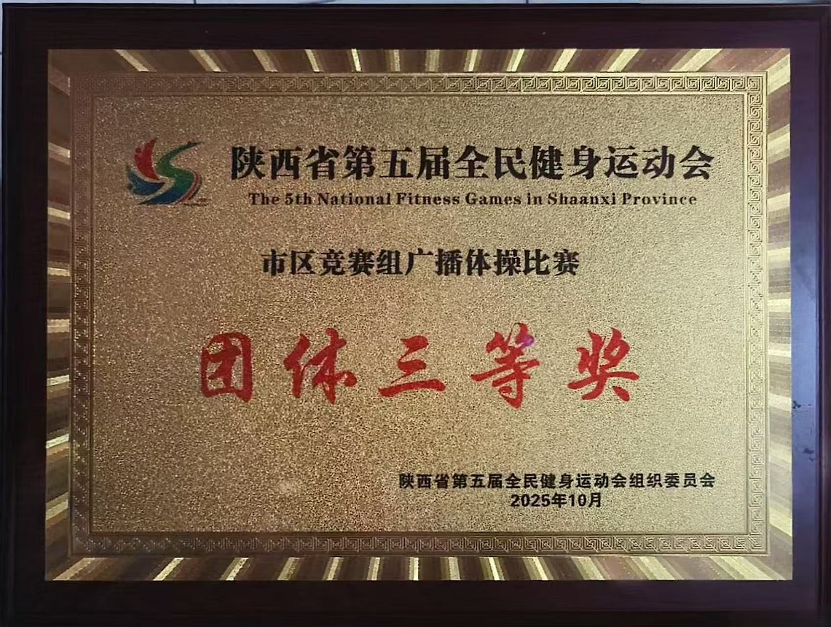 10月13日晚上,由陕西省人民政府主办的陕西省第五届全民健身运动会暨2025年陕西省群众体育赛事五级联赛广播比赛(省级总决赛)在商洛市望江楼广场圆满落幕,我校师生组成的安康市代表队斩获广播体操比赛团体三等奖。