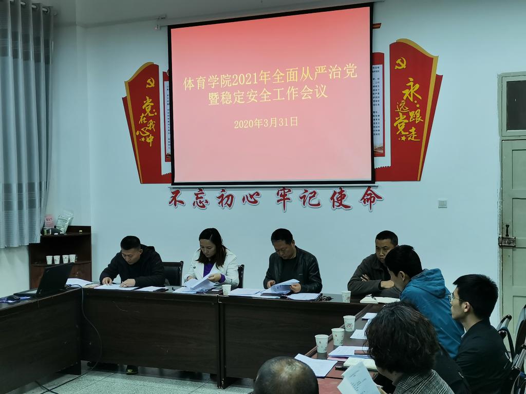 3月31日下午,体育学院在体育馆一楼会议室召开2021年全面从严治党暨稳定安全工作会议。PP电子游戏平台网站全体教职工参加会议,会议由党总支书记高立平主持。