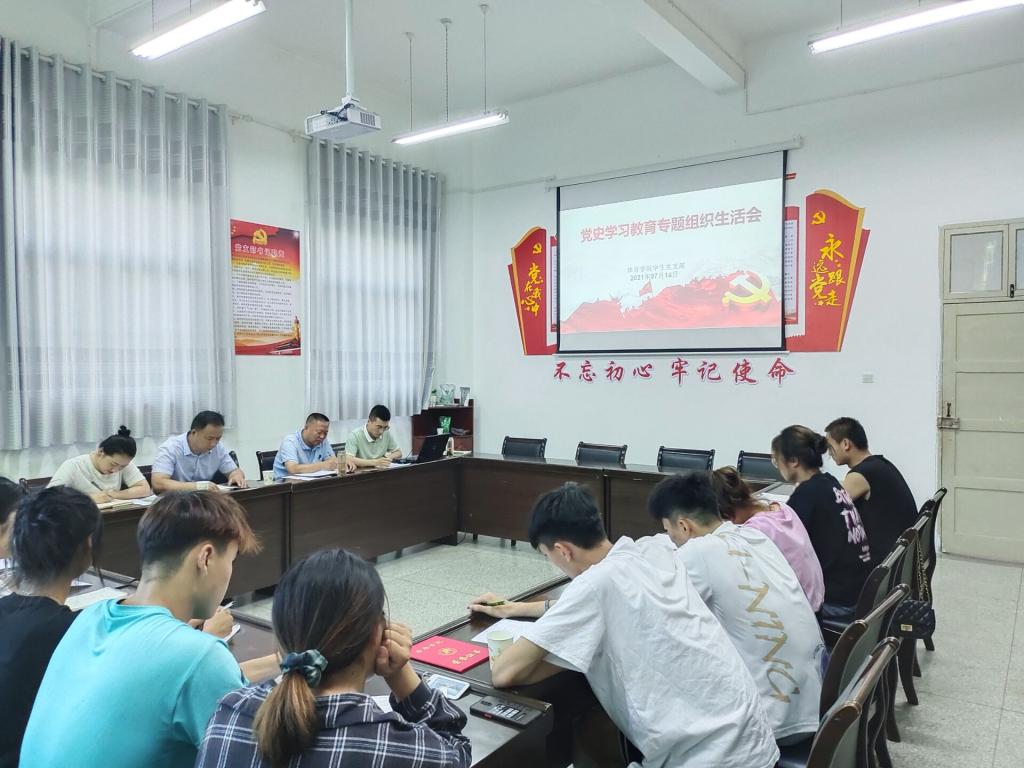 7月14日下午PP电子游戏平台网站学生党支部在PP电子游戏平台网站会议室召开党史学习教育专题组织生活会,支部全体党员参加了会议,党总支书记高立平、专职组织员王辉以普通党员的身份参加本次专题组织生活会,会议由学生党支部书记王立同志主持。