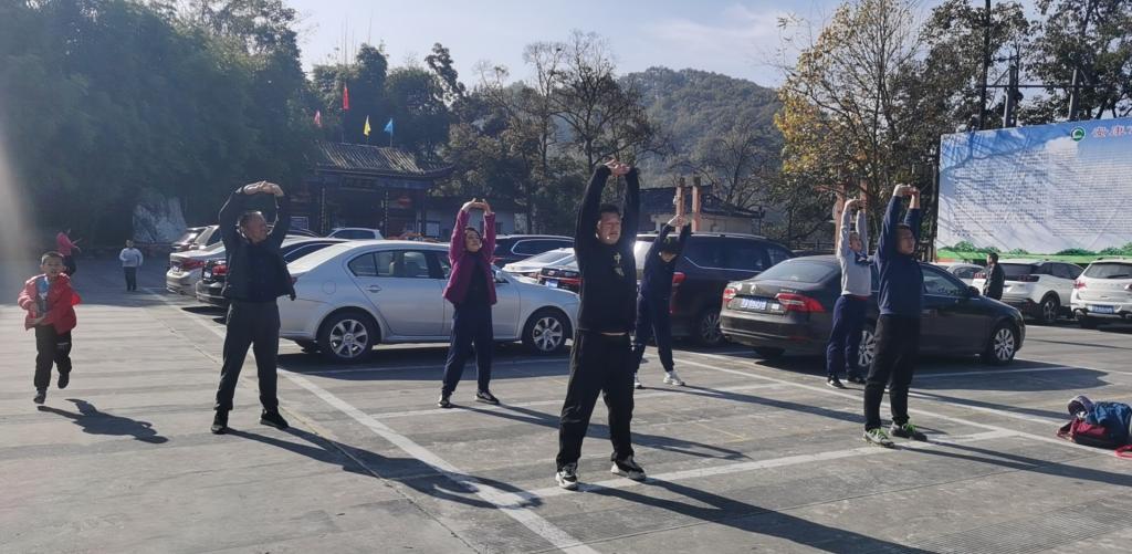 徒步路线自江南校区图书馆起,沿南环路向西,途径香溪路,沿香溪洞景区步行栈道上行,至香溪洞景区广场,在广场集体演练太极拳、五禽戏、八段锦、广场舞等健身项目后,徒步香溪洞景区,出景区后原路返回学校。途中绿水青山,暖阳和煦,PP电子游戏平台网站教工精神饱满,欢声笑语不断。