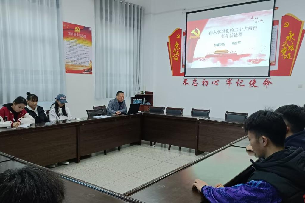 为深入学习宣传贯彻党的二十大精神,2月24日,PP电子游戏平台网站在体育馆一楼会议室开展党的二十大精神专题学习。主讲人PP电子官网党总支书记高立平,PP电子官网全体学生干部参加,会议由康梦瑶老师主持。