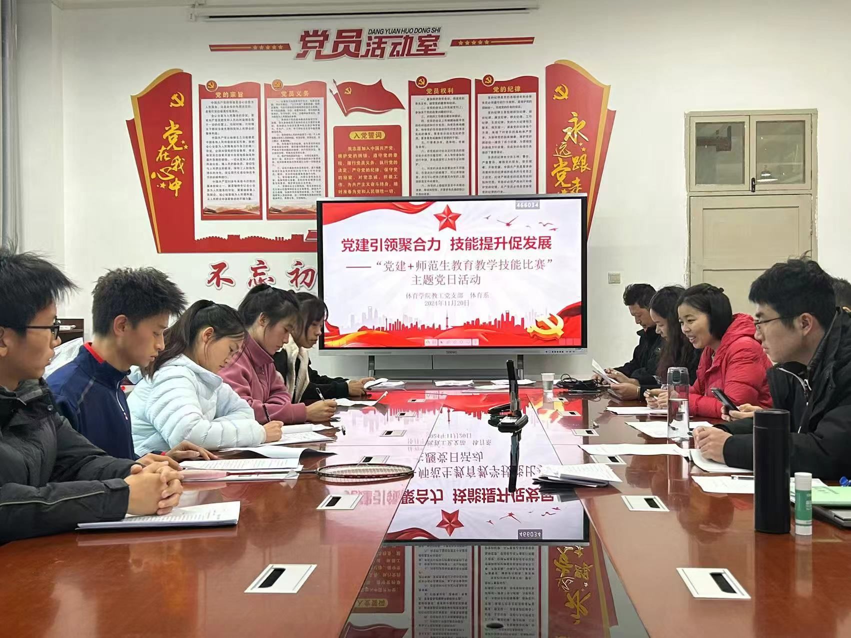 为深入贯彻党的教育方针,推动党建工作与专业教育的深度融合,进一步提高PP电子官网师范生教育教学技能,PP电子游戏平台网站教工支部联合体育系于11月21日开展了“党建+师范生教育教学技能比赛”主题党日活动。学院领导班子成员,教工党支部书记、体育系主任等部分党员教师参加了活动。