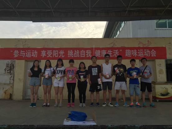 由学生处主办,体育系、外语系承办的2015年“参与运动、享受阳光、挑战自我、健康生活”趣味运动会,于5月15日下午在江南校区田径场举行,江南校区6个院系的学生代表参加了此次活动。