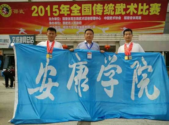 我校代表队由体育系主任冯德学担任领队,青年教师郭西魁、蔡龙两位运动员组成。代表安康学院同时也代表陕西省参加了比赛。经过3天的激烈角逐,我校武术队共取得了1金、2银、1铜的优异成绩,其中:两人形意拳徒手对练获得金牌,郭西魁获得红拳拳术银牌,蔡龙获得形意拳拳术银牌和形意朴刀铜牌。此外,冯德学主任被大会评为武德风尚奖教练员,郭西魁、蔡龙两位老师被评为武德风尚奖运动员。