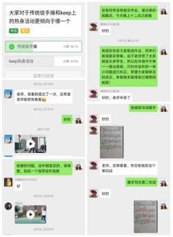 大学体育课程采取“课堂派”+“腾讯会议”相结合教学,可直播可录播,在教学方式上,通过教师讲解、示范、3D视频、作业讨论、通知、问卷、班级群聊、分组练习、等多种方式和学生进行互动与交流,及时发现并解决在授课及学习过程中出现的各类问题。