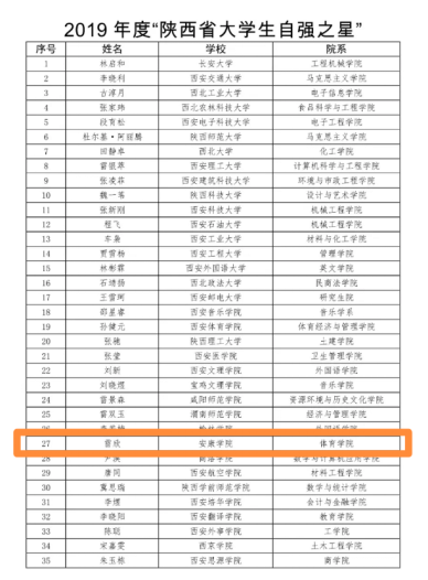 根据共青团陕西省委《关于组织开展寻访2019年度“陕西省大学生自强之星”活动的通知》文件精神,2019年度“陕西省大学生自强之星”活动结果已揭晓。安康学院共有两名同学成功入选。其中,PP电子官网2017级优秀学子雷欣荣获2019年度“陕西省大学生自强之星”荣誉称号。