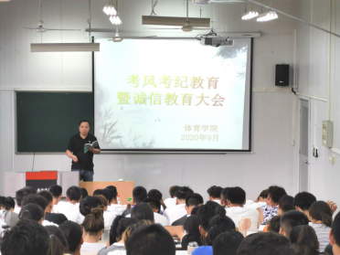 “端正考风、严肃考纪、文明答题、诚信应考”。2020年9月18日下午3点、9月20日下午4点,PP电子游戏平台网站分年级在6408教室召开了“PP电子游戏平台网站考风考纪教育暨诚信教育大会”,本次教育活动由学工办主任郭建鹏老师、辅导员康梦瑶老师主持,2018级、2019级体育教育专业全体学生参加了大会。