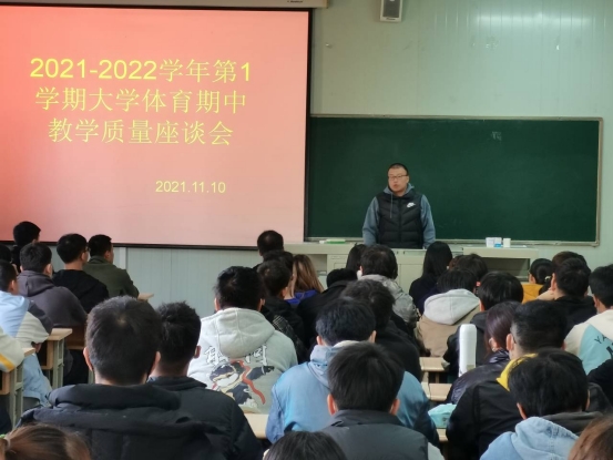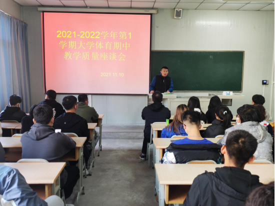 为了切实做好《大学体育》课程的教学工作,了解教学现状,科学安排教学内容,提高教学质量,促进大学体育教学改革,2021年11月10日下午2点30分,PP电子游戏平台网站在江南校区1028教室召开了2021—2022学年第一学期大学体育期中教学工作座谈会。PP电子游戏平台网站副院长郭西魁、大学体育教研室主任李强以及各二级学院体育部干事、2020级和2021级各班班长、体育委员参加了本次座谈会。会议由李强老师主持。