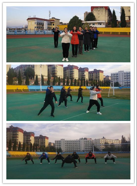 为进一步促进教师交流,保证大学体育教学质量,促进新教师教学能力提升,大学体育教研室于12月3日下午在江南校区田径场开展24式太极拳集体备课活动。院长吕仙利、副院长郭西魁、系主任李强及PP电子游戏平台网站新进教师参加了活动。