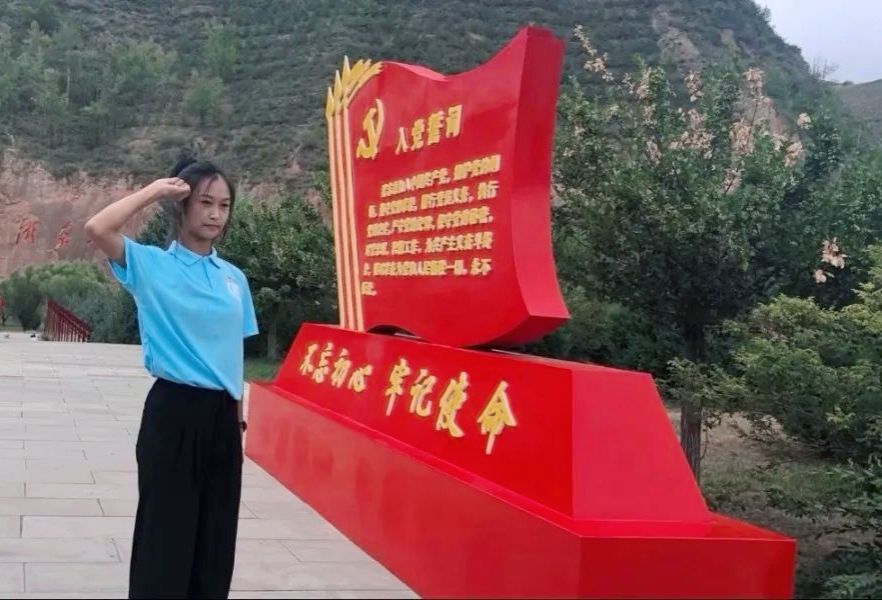 军训结束进入正常学习阶段,她积极向党组织递交了入党申请书,在党组织的教育和引导下,她深入学习习近平新时代中国特色社会主义思想和党的路线、方针、政策,在思想觉悟上有了飞跃。同年暑期,参加了“重走转战陕北路 坚定信念跟党走”高校党史学习实践活动,使她加深了对党史的认识,坚定了她的理想、信念,完善着她的人格。