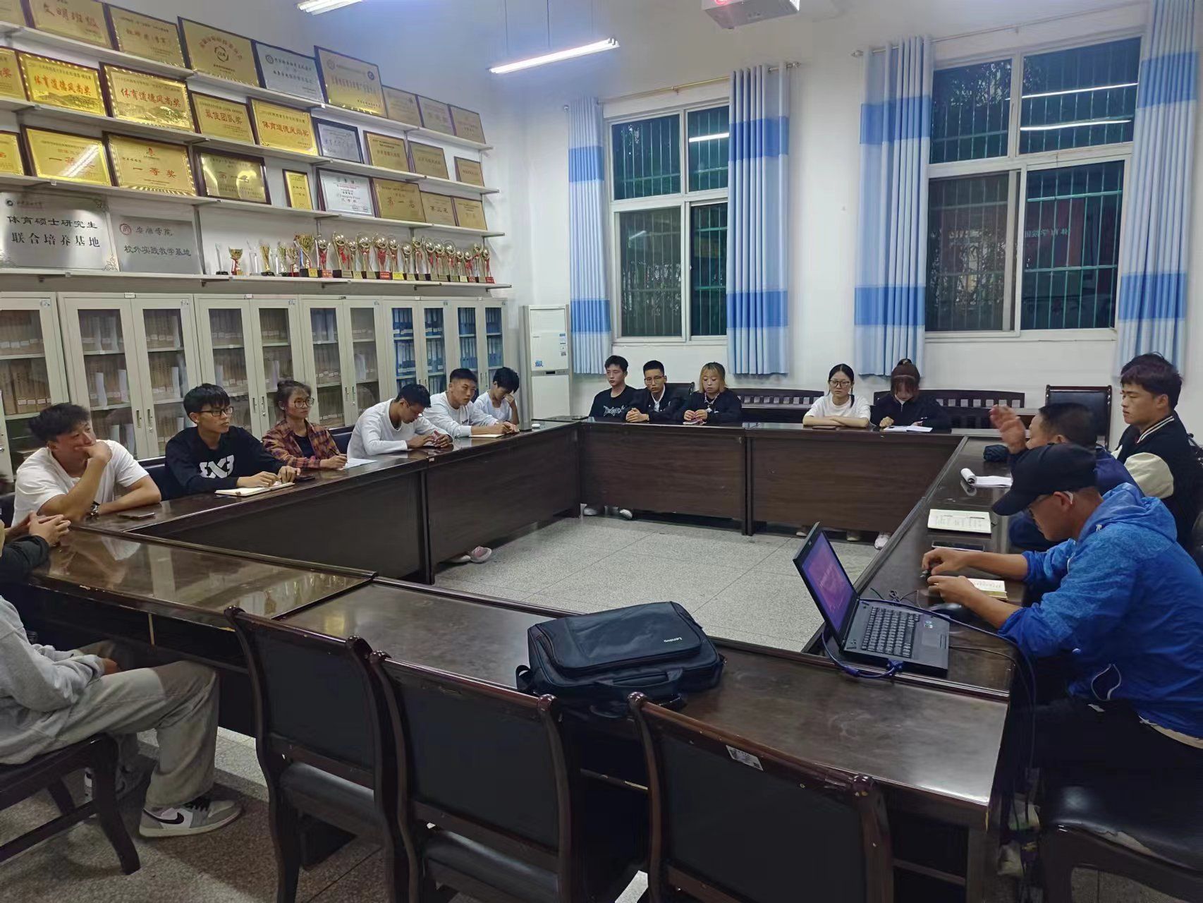 为了进一步提升体育教育专业学生法律意识,激发学生爱国情怀,10月26日,PP电子官网在体育馆一楼会议室召开“爱国是法律责任”主题学习会议。PP电子官网党总支书记高立平、团总支书记刘姚成及各班级团支部成员参加了学习,会议由高立平主持。