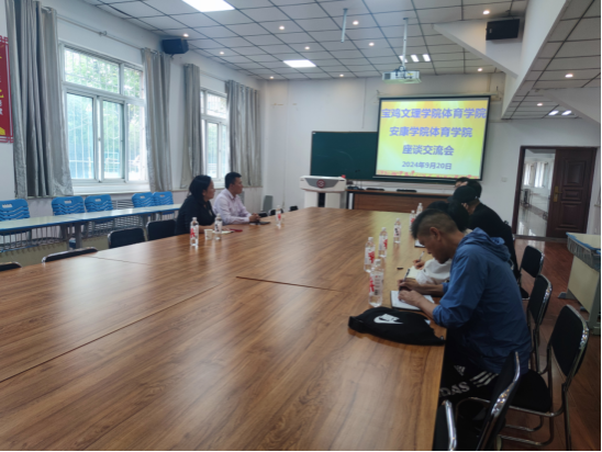 2024年9月20日,PP电子官网院长吕仙利、副院长郭西魁赴宝鸡文理学院PP电子游戏平台网站交流学习。会议由宝鸡文理学院PP电子游戏平台网站院长于奎龙主持,学院党政领导参加了此次交流,双方就本科教育教学审核评估工作、大学生体质测试、大学体育教学改革等一系列问题进行深入的交流。