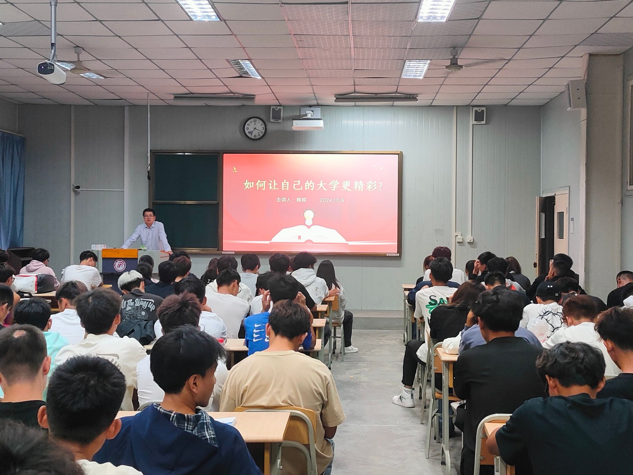 2024年10月9日晚上,PP电子游戏平台网站党总支书记韩晔在10号教学楼1038教室为2024级体院新生带来入学教育课——如何让自己的大学更精彩。韩书记从“认识大学、学会学习、遵守纪律、做好发展”四个方面勾勒出精彩大学四年应有画像雏形,为24级全体新生带来大学启蒙教育,帮助他们正确认识大学,认识自我,了解未来发展趋势,坚定专业自信。