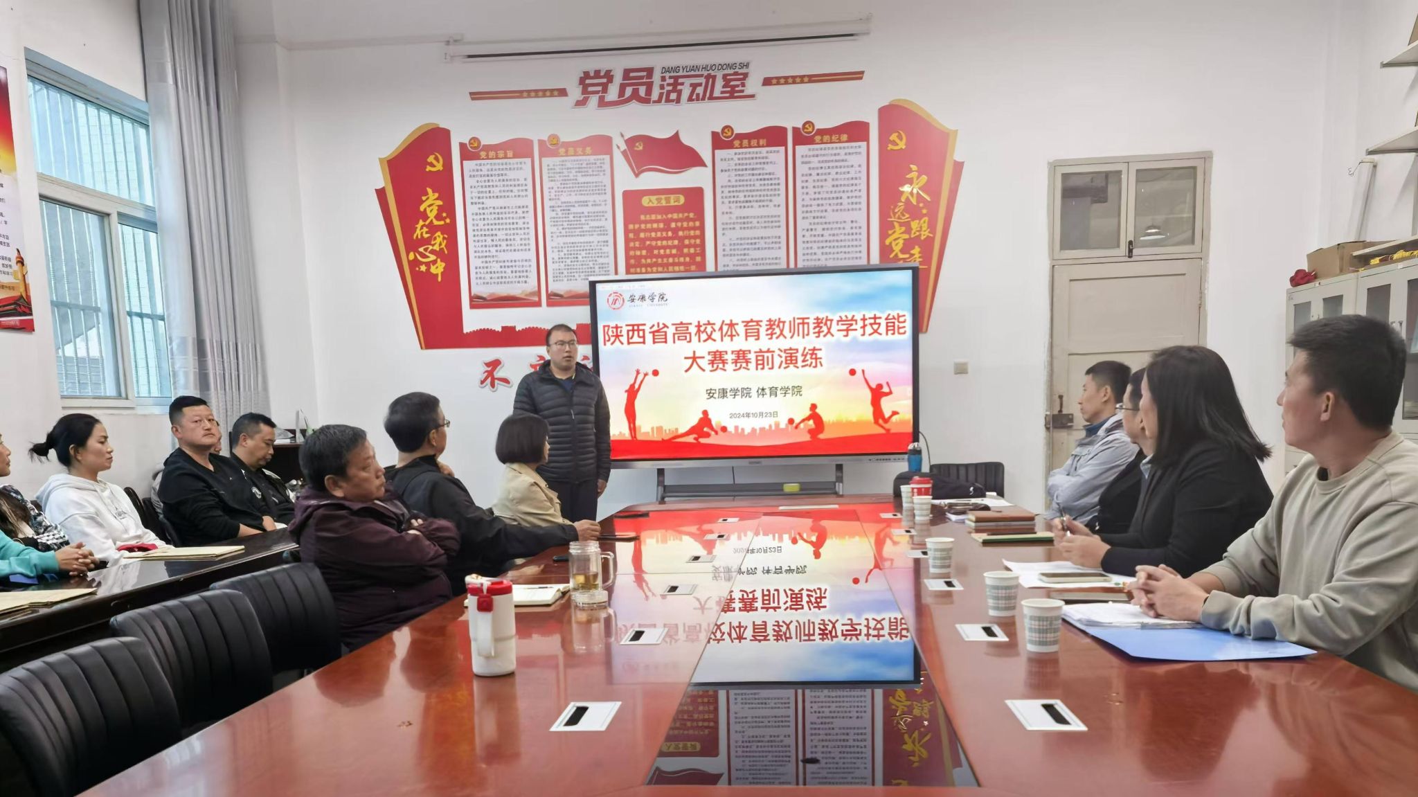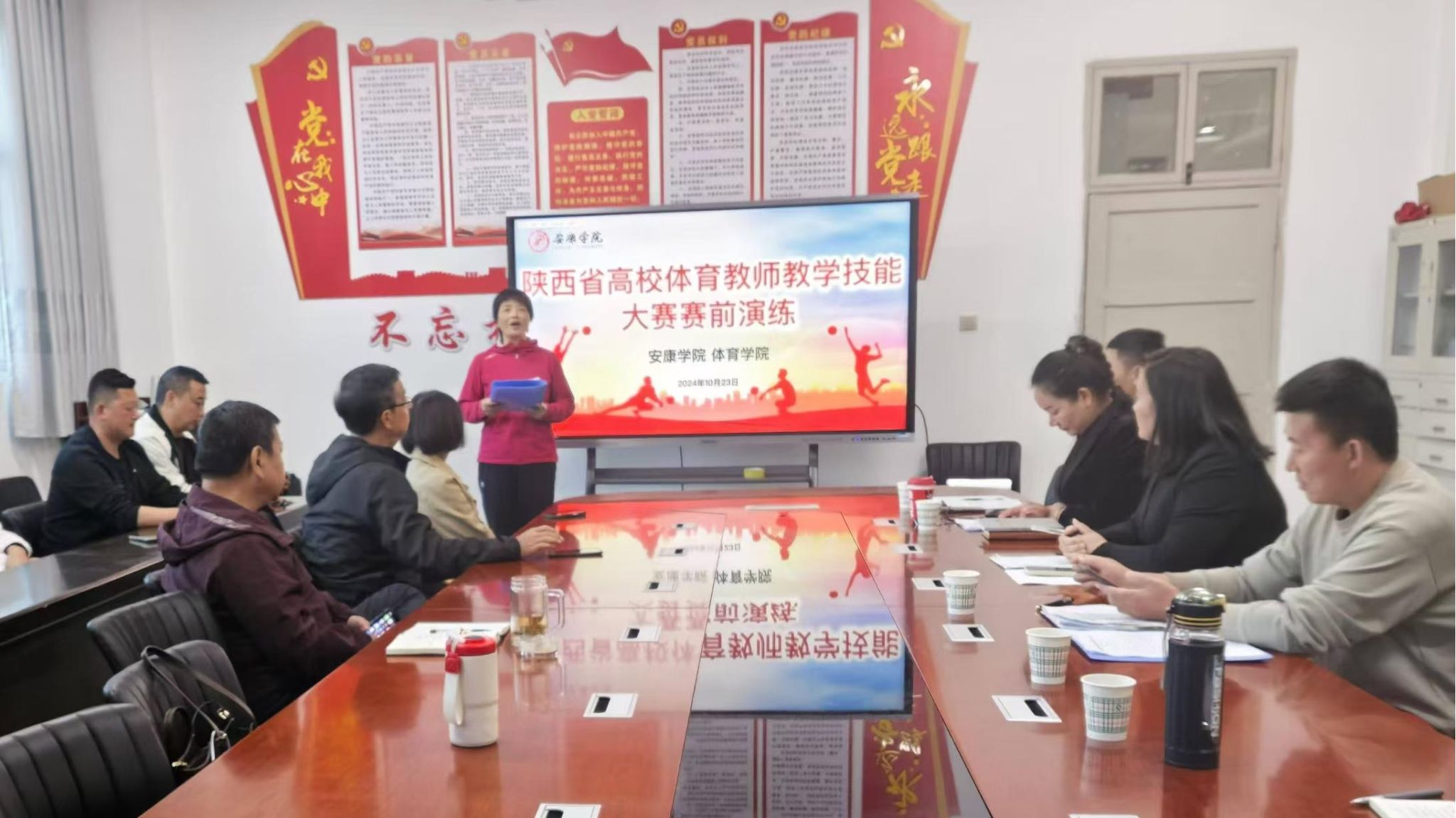 为使PP电子官网参赛教师更好备战陕西省高校体育教师教学技能大赛,10月24日下午,PP电子官网组织举办了陕西省高校体育教师教学技能大赛赛前演练活动。本次活动邀请PP电子游戏平台网站领导班子、教学督导作为评委,全体教师进行观摩,本次赛前演练活动完全按照正式比赛流程进行,为参赛教师模拟参赛环境。活动由大学体育教研室主任赵娇艳主持。