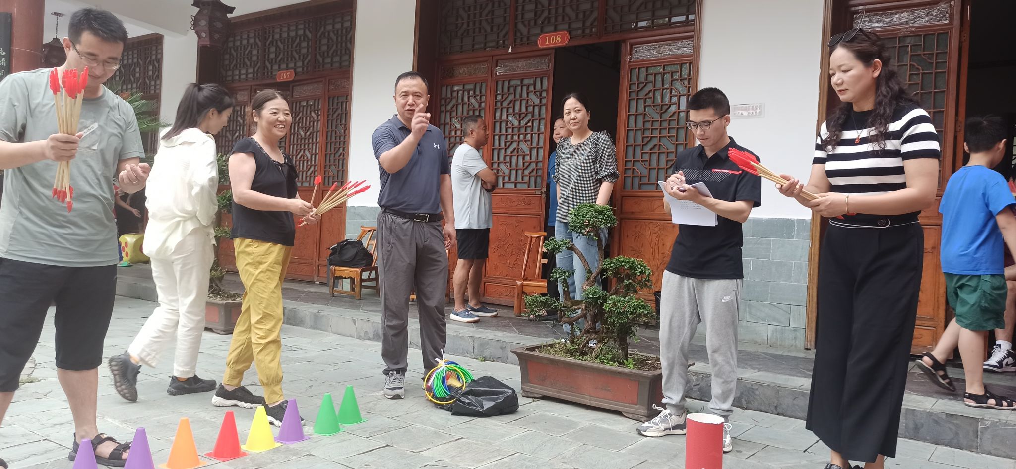 运动会精心设置了多项趣味十足的项目。“趣味投壶大赛”最为引人入目,老师们站在指定位置投壶,姿势各异,有的老师手法精准,连连命中,赢得阵阵喝彩;有的老师虽然投壶姿势不太标准,但那份认真投入的劲头让大家忍俊不禁。