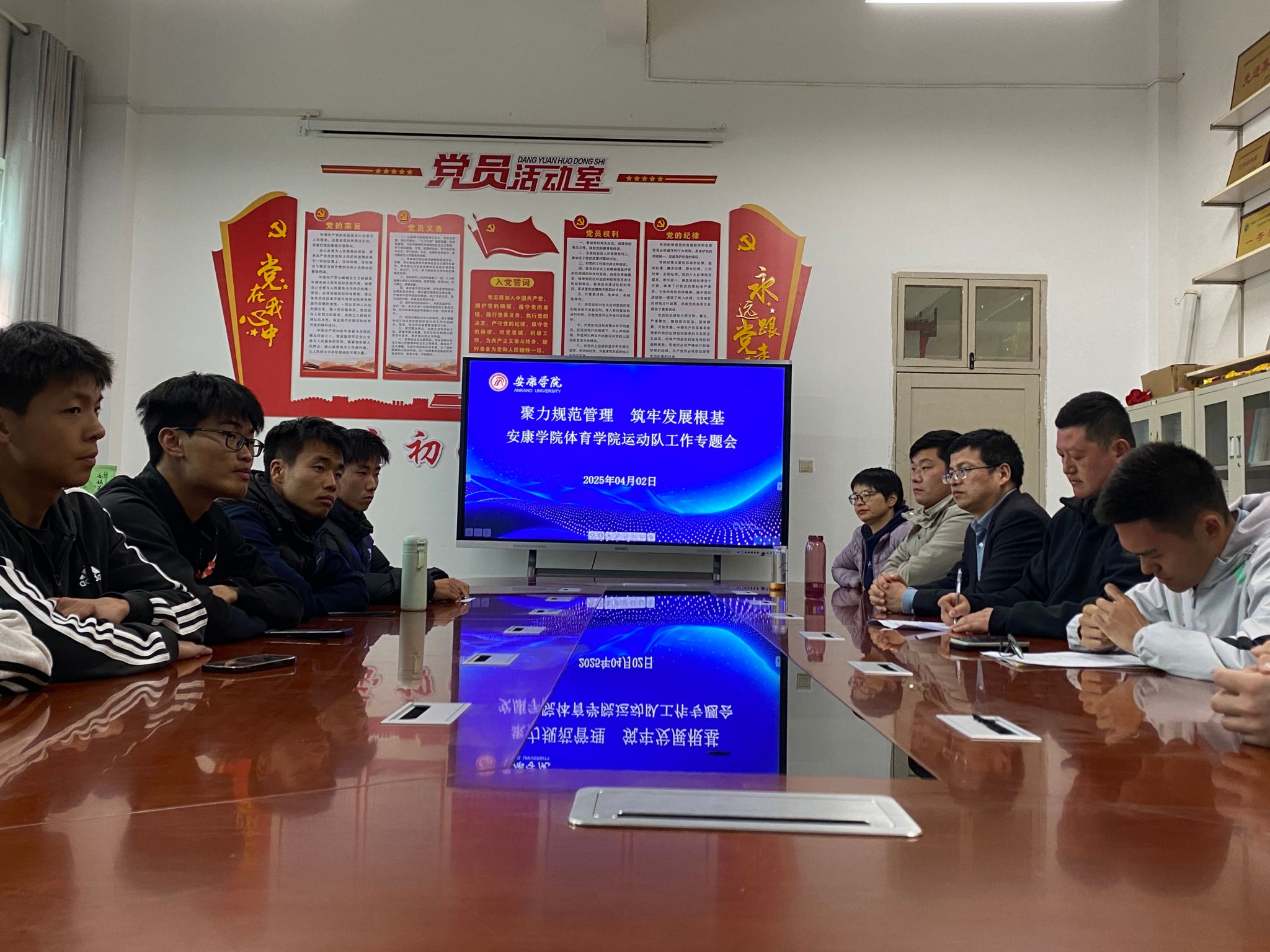 4月2日,安康学院PP电子游戏平台网站召开“聚力规范管理,筑牢发展根基”运动队工作专题会议。教学院长郭西魁、党总支书记韩晔及各训练队师生代表参会。