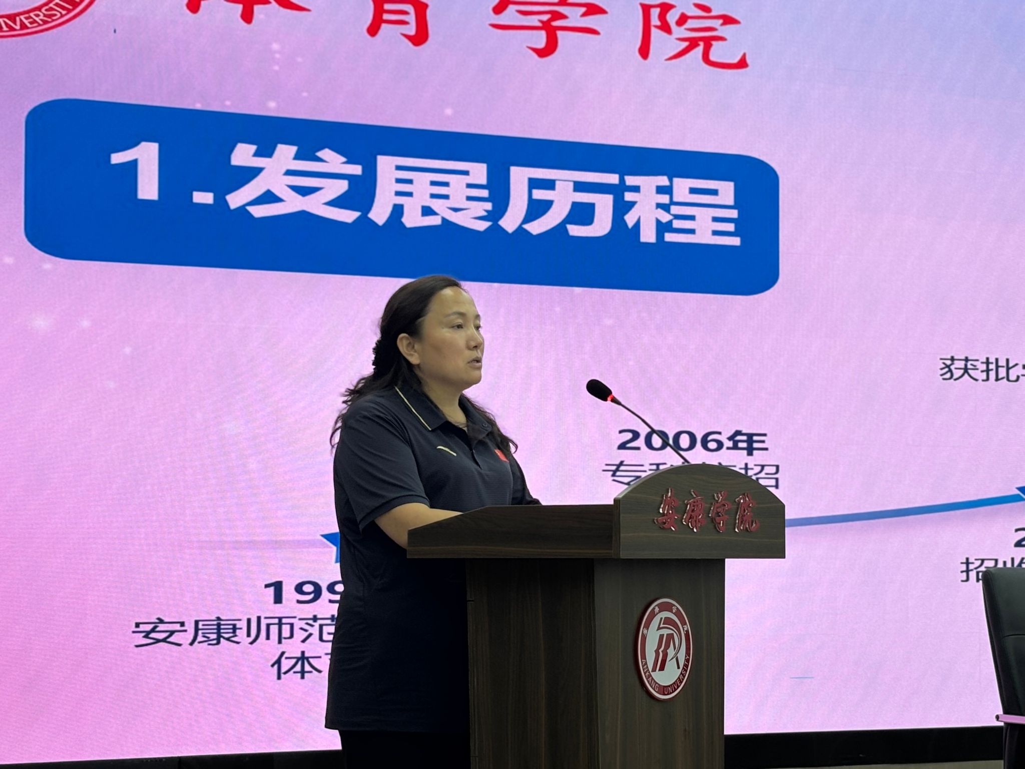 院长吕仙利代表学院对2025级全体新生的到来表示最热烈、最诚挚的欢迎,并简要介绍了PP电子游戏平台网站的发展历程、办学特色和已有成果,鼓励同学们勤奋学习、积极锻炼,努力实现全面发展,在这里开启精彩的大学生活。随后她以《以体为梦向未来奋楫笃行启新程》为题做了一场精彩的“大学第一课”专题报告,引导新生深入思考三个关键问题:“为什么选择安康学院PP电子游戏平台网站?四年后要成为什么样的人?怎样去实现自己的目标?”她指出,选择体育即是选择了拼搏向上的人生态度,选择安康学院则是选择了一个脚踏实地、砥砺成长的平台。她鼓励新生将个人理想融入“体育强国”和“健康中国”的国家战略,勇担时代使命与社会责任。围绕实现路径,她对2025级新生提出三点期望:一是坚定信念、不忘初心,始终保持对体育事业的热爱;二是勤奋务实、知行合一,既钻研技能又拓宽人文视野;三是勇于突破、善于合作,在挑战与协作中持续成长。她勉励大家以体育为笔、青春为墨,描绘梦想与成长的旅程。
