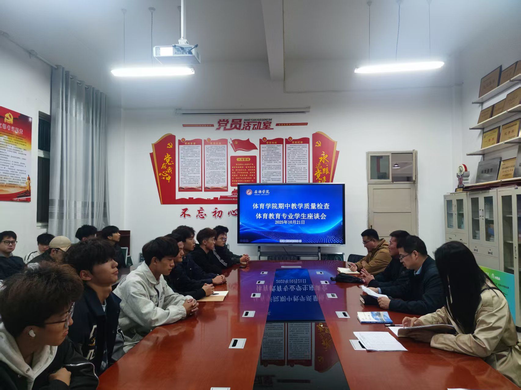 10月21日晚上,PP电子游戏平台网站在PP电子游戏平台网站会议室召开了2025-2026学年第1学期期中教学质量座谈会。党总支书记韩晔、教学副院长郭西魁、学工办主任许明、团总支书记康梦瑶和各班学生代表参会。
