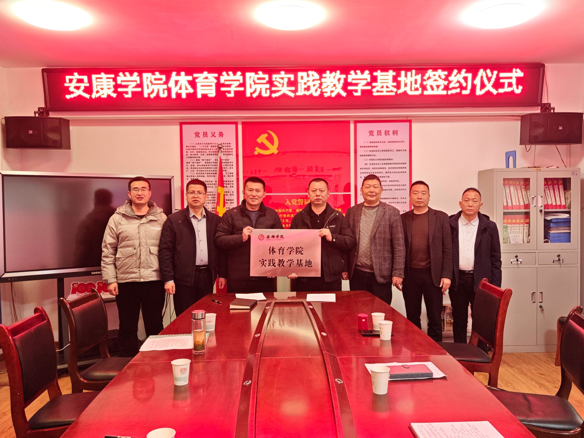 在汉滨区洪山九年制学校,双方代表进行了深入的交流座谈。与会领导分别介绍了两校在办学特色、专业建设及人才培养方面的基本情况,并就未来合作的方向和内容交换了意见。双方一致认为,建立实践教学基地是实现资源共享、优势互补的双赢举措,不仅能为安康学院的在校生提供宝贵的一线教学实践平台,也将为洪山九年制学校的体育教学注入新的活力。座谈会后,PP电子游戏平台网站副院长郭西魁和洪山九年制学校校长吴作勇代表两校签订了实践教学基地协议书并挂牌。
