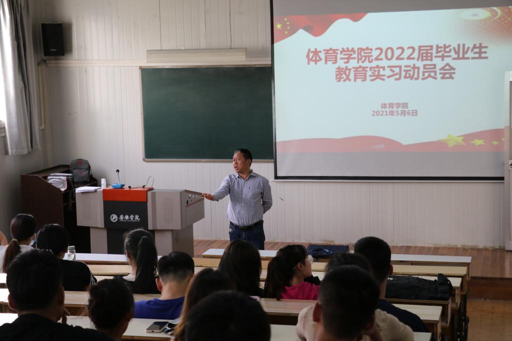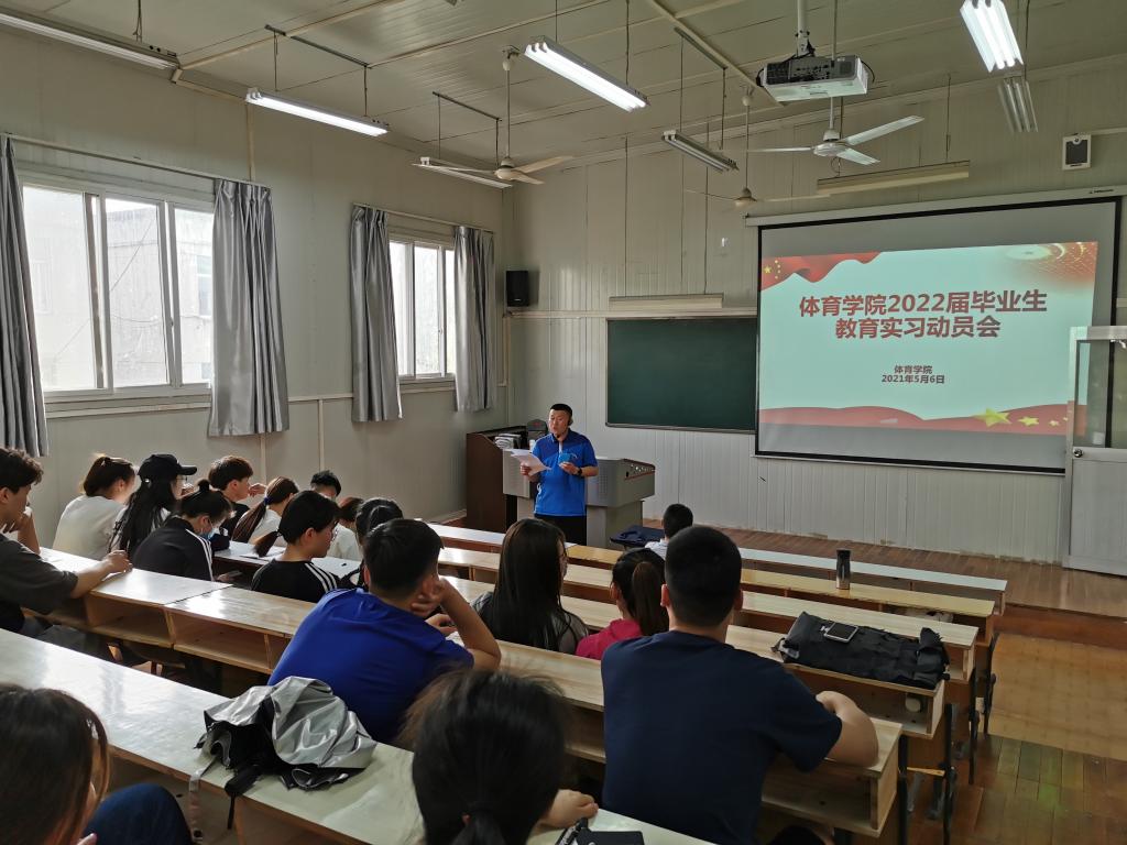 为不断提高体育教育专业学生综合素质和教学技能,推动一流专业发展,5月6日下午,PP电子游戏平台网站在6405教室召开2022届毕业生教育实习动员大会。PP电子游戏平台网站党总支书记高立平、教学副院长郭西魁、学工办副主任王立、2022届全体毕业生参加了会议,会议由王立主持。