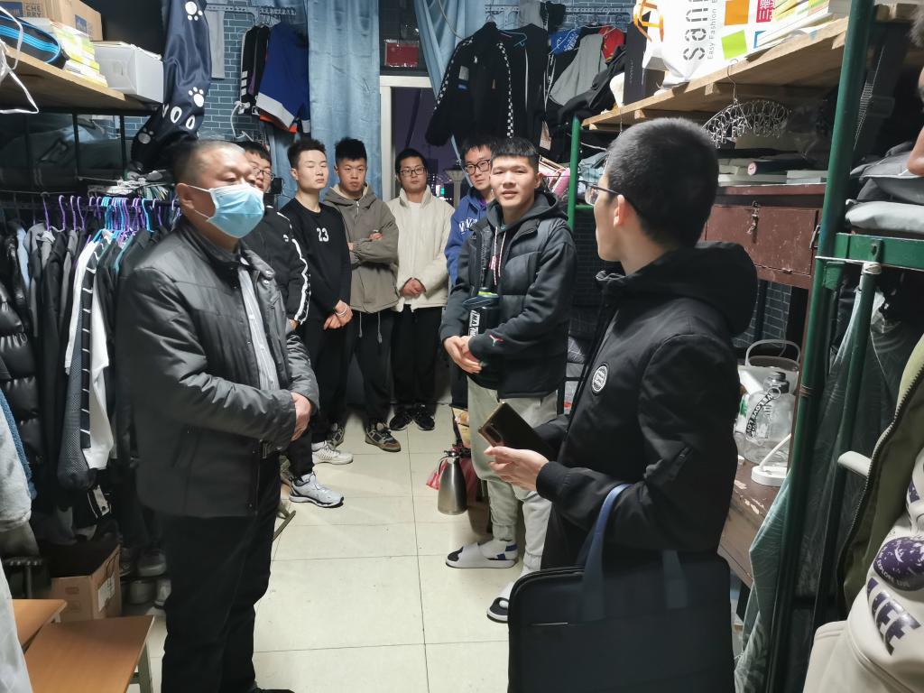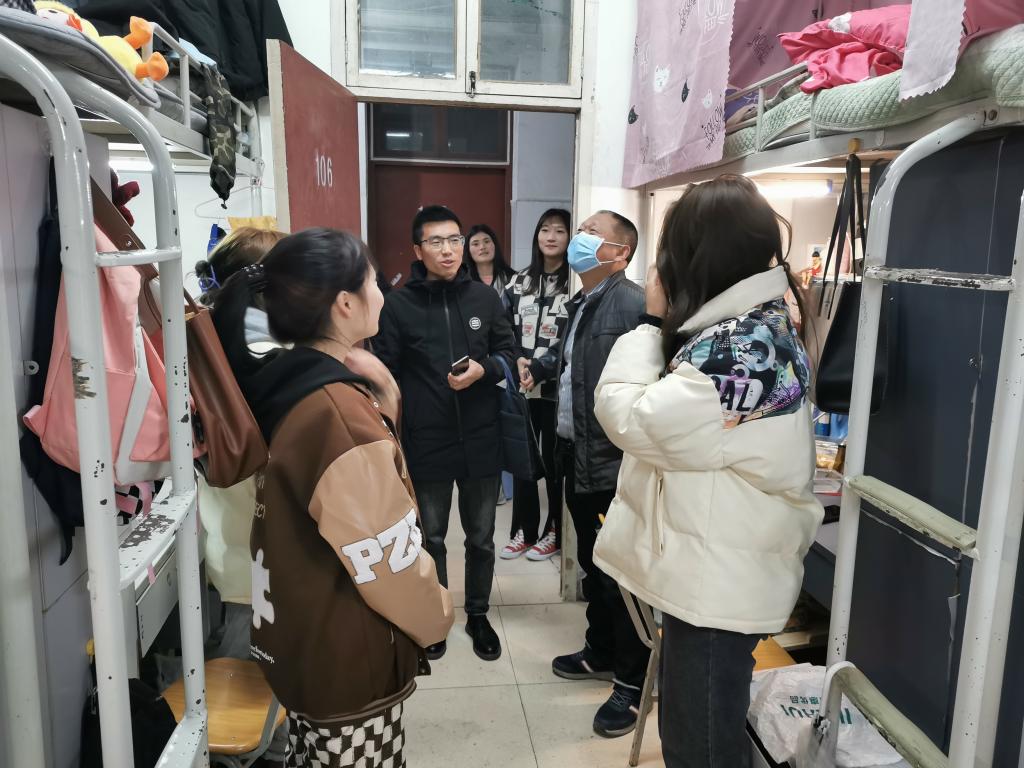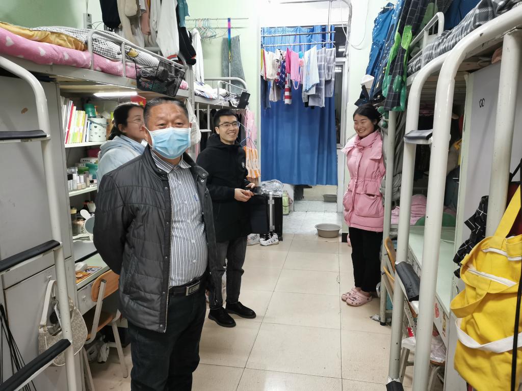 在宿舍里,高立平书记详细询问宿舍成员的返校情况,了解返校学生在校学习、生活、工作等情况,叮嘱在校学生,严格遵守疫情防控要求,务必做好宿舍通风、卫生消杀、卫生打扫等工作,保持宿舍环境干净整洁。要求学生不断提高日常安全意识和防范电信诈骗意识,切实做好疫情防控各项措施,共同营造安全卫生的校园生活环境。