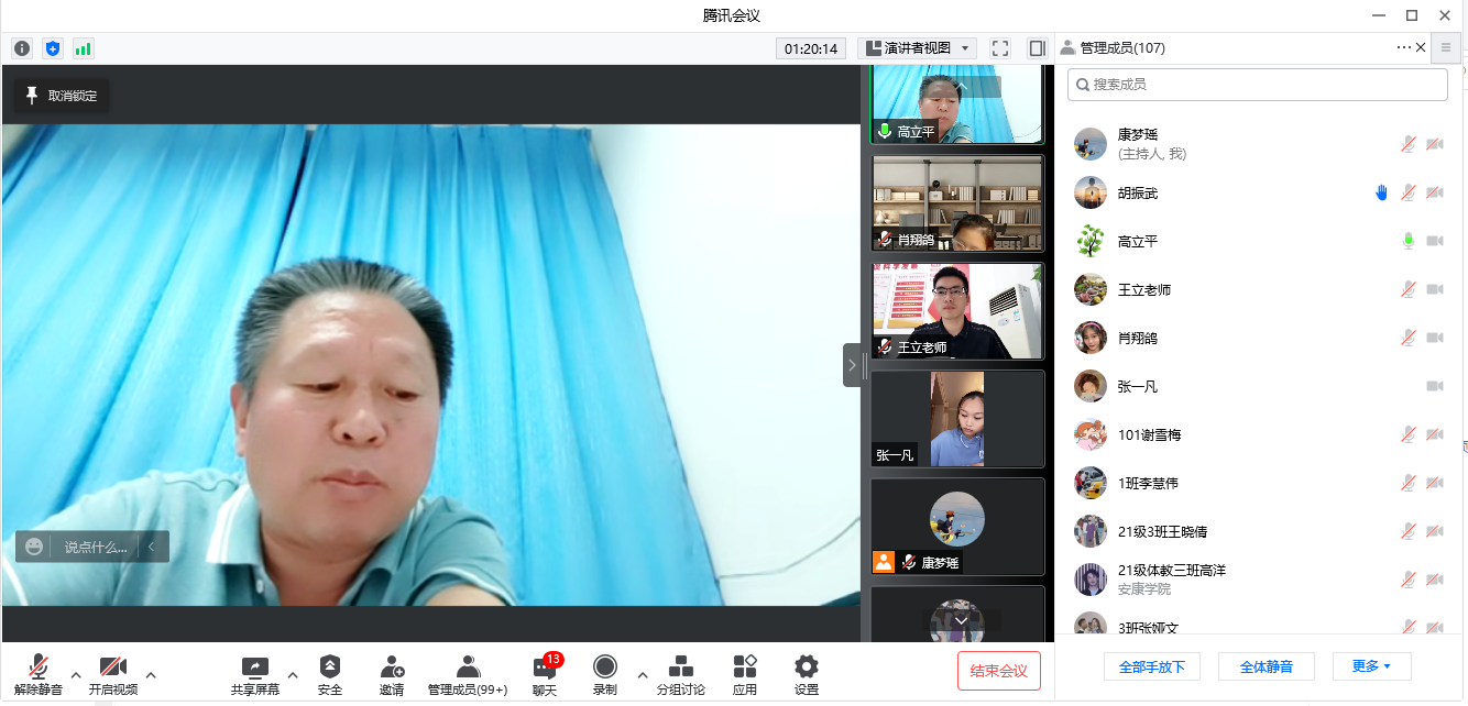 首先康梦瑶老师,领学近期学校有关疫情防控的相关通知,传达学院近期线上教学方案。