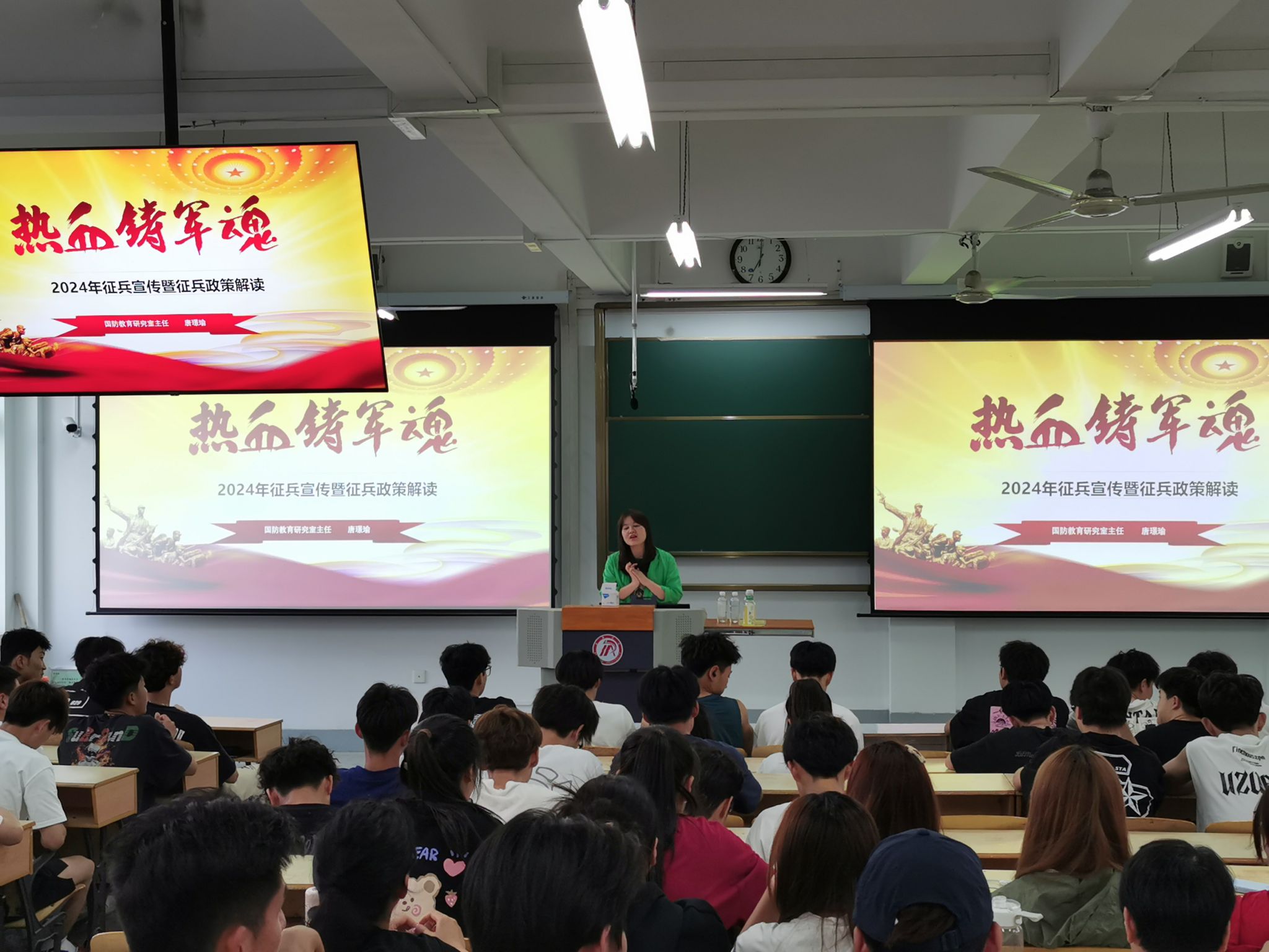 为贯彻落实国家征兵政策,鼓励在校大学生响应国家号召应征入伍,投身军旅,绽放青春。4 月25日晚,我院邀请安康学院国防教育研究室主任唐璟瑜老师在1510教室开展“热血铸军魂——2024年征兵宣传暨征兵政策解读”主题宣讲活动。学工办主任王立、2023级辅导员刘姚成及2023级全体学生参加了宣讲会。