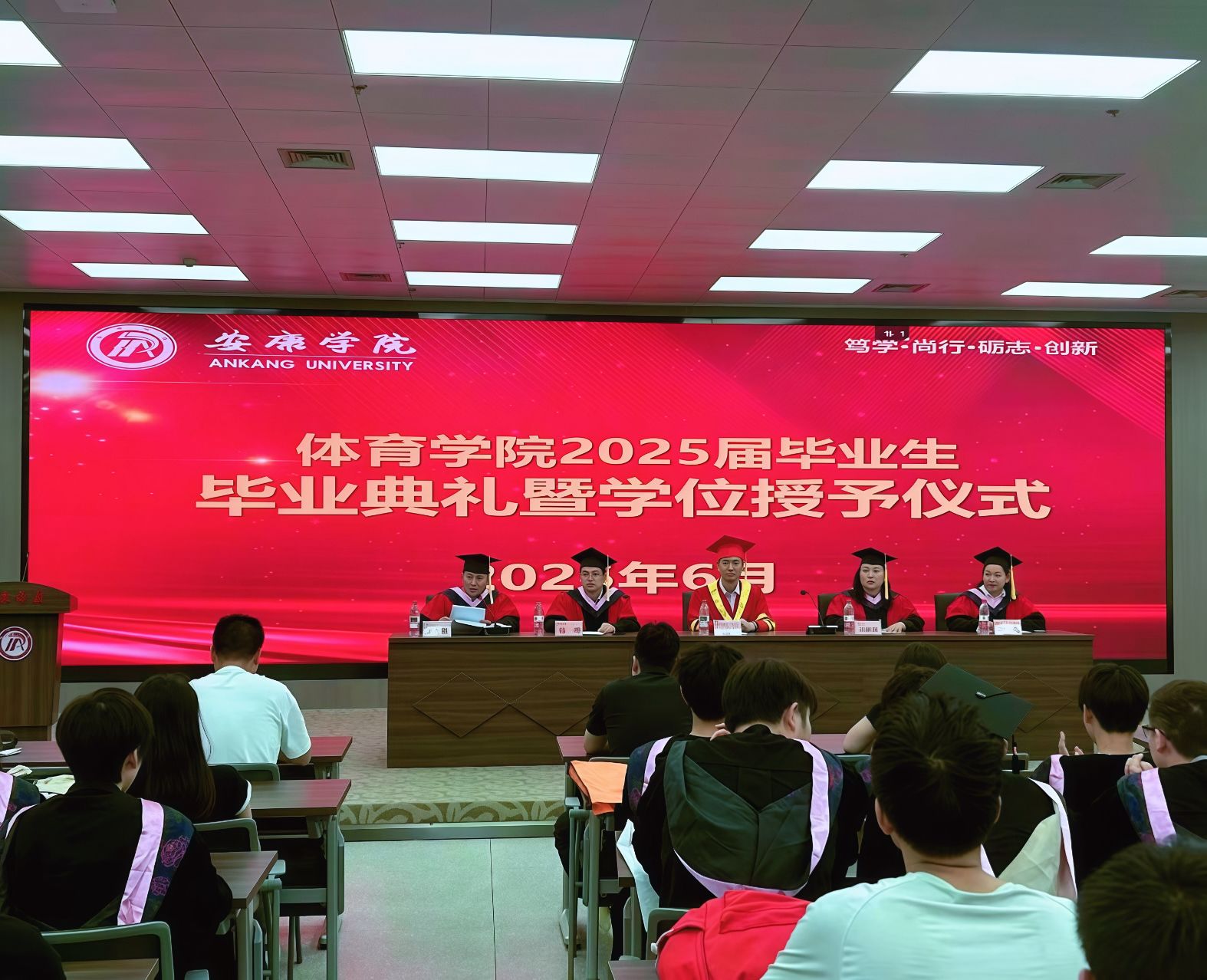 学位授予仪式上,屈险峰和学院领导班子分别为毕业生拨穗正冠、授予学位证书,并送上诚挚祝福。希望全体毕业生永葆体育赤子之心,携母校精神薪火,在育人沃野耕拓梦想,于历史长卷镌刻新一代教育者的荣光!
