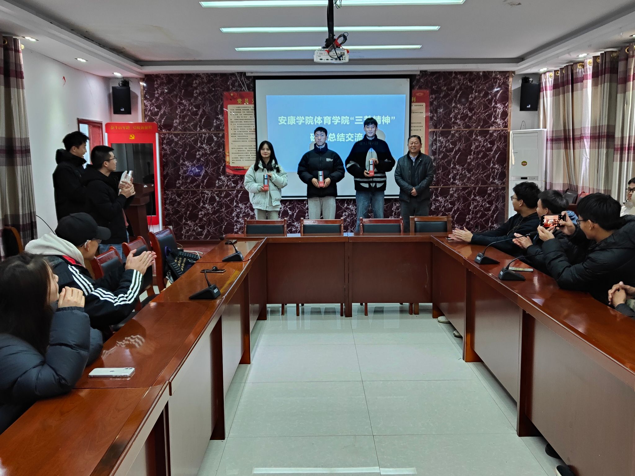 在随后的总结交流会上,同学们进行了“如何践行三苦精神”为主题的即兴演讲。高立平对大家的学习、演讲进行了点评,并号召同学们要汲取 “三苦”精神的精髓,自觉传承和发扬“三苦”精神。把“三苦”精神运用到日常学习、训练当中,培育优良作风、养成良好学风,再创新业绩。最后,高立平等为获奖同学颁发了奖品。