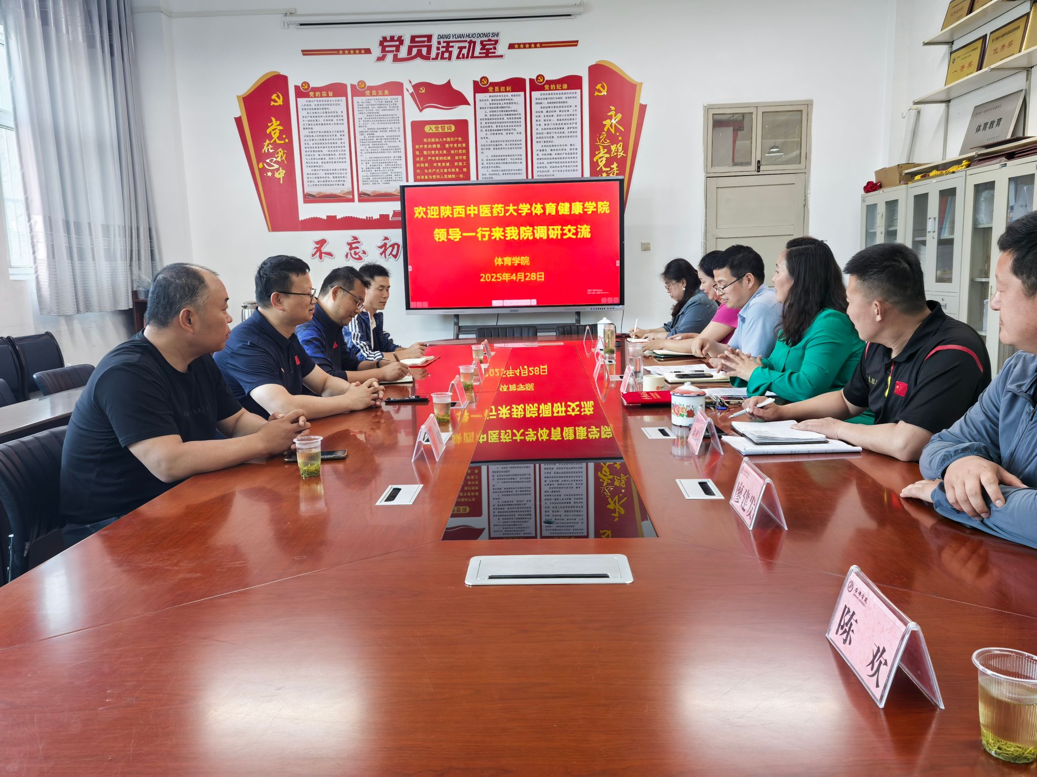 为加强校际合作,4月28日,陕西中医药大学体育健康学院院长杜国辉一行4人来PP电子官网调研交流。PP电子官网领导班子及相关专业负责人及教师代表热情接待并座谈。双方围绕学科建设、人才培养、实践教学等内容展开深入探讨,共谋高质量发展路径。